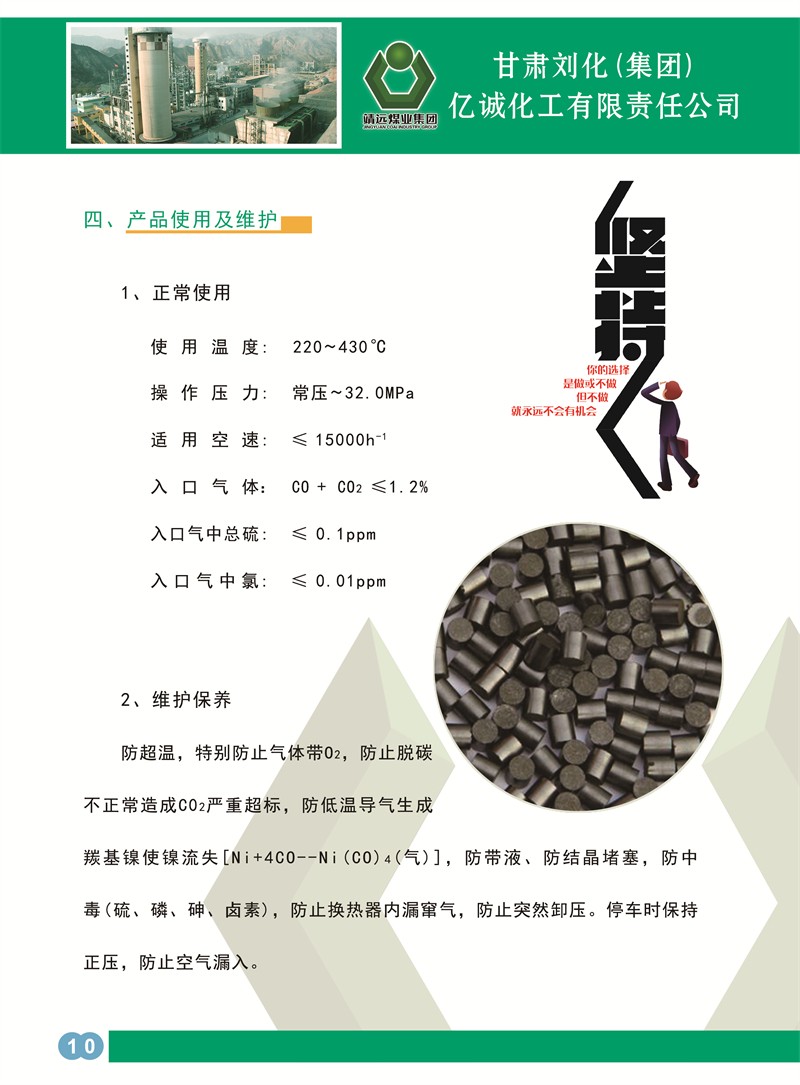 1、用途:用于高壓醇烷化工藝中,將醇后氣中少量碳氧化物在本催化劑作用下與氫反應生成水和惰性氣體甲烷,出口微量CO+C02≤10PPm(干基)。本產(chǎn)品也可用于其它制氛工藝中制備高純氫。