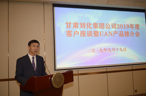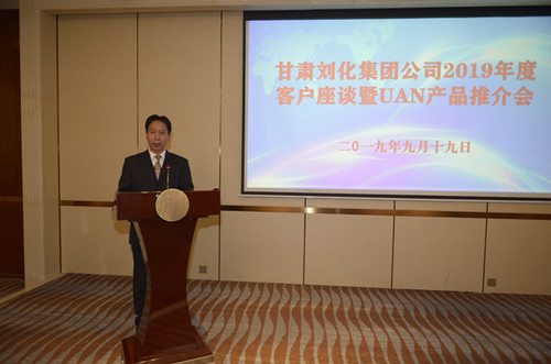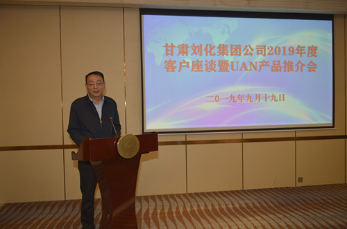 9月19日,為期半天的劉化公司客戶(hù)座談暨UAN新產(chǎn)品推介會(huì )在甘肅省永靖縣公航旅黃河明珠國際酒店成功召開(kāi),來(lái)自省內外經(jīng)銷(xiāo)商代表50多人參加會(huì )議。靖煤集團財務(wù)總監劉永翀與劉化公司黨委書(shū)記、董事長(cháng)劉峰,劉化公司黨委副書(shū)記、總經(jīng)理周程等在家公司領(lǐng)導出席會(huì )議并發(fā)表重要講話(huà)。