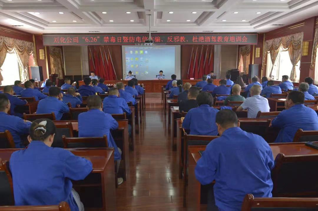 6月16日,在第36個(gè)“國際禁毒日”到來(lái)之際,公司平安建設工作辦與社區保衛聯(lián)合在迎賓五樓會(huì )議室舉辦以“拒毒防毒暨反邪、防電詐、杜絕酒駕”為主題的宣傳教育知識講座。邀請永靖縣禁毒辦副主任劉衛雄、永靖縣公安局反電詐中隊民警楊橋、永靖縣公安局反邪教中隊民警他維艷、永靖縣公安局交警大隊民警范玉鵬分別宣講了拒毒防毒、反邪教、防電信詐騙及道路交通安全知識,公司各單位、部室負責人,職工代表70余人參加講座。