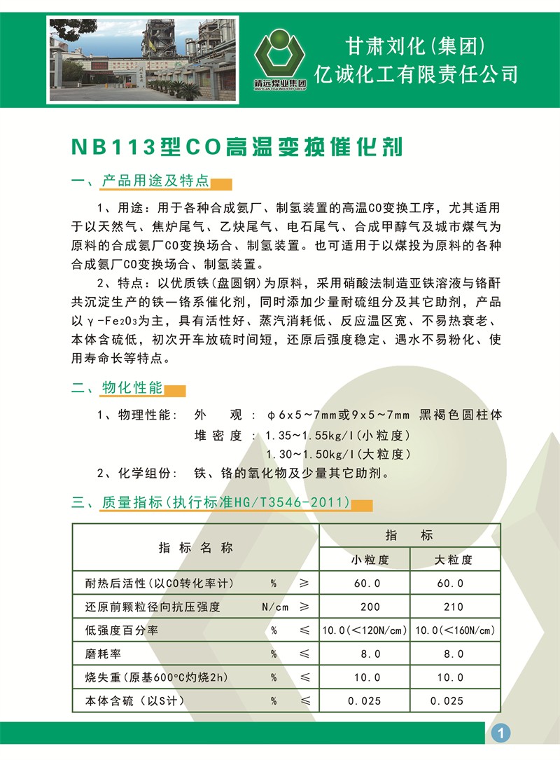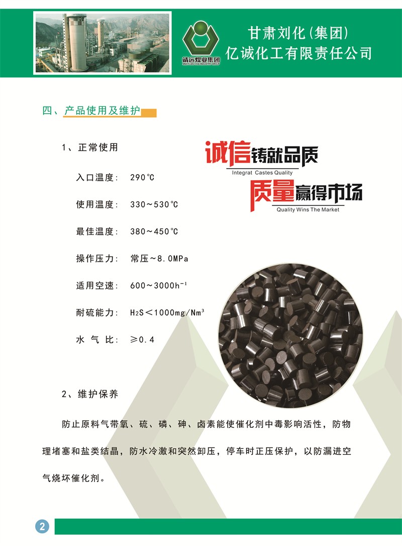 2、特點(diǎn): 以?xún)?yōu)質(zhì)鐵(盤(pán)圓鋼) 為原料,采用硝酸法制造亞鐵溶液與鉻配共沉淀生產(chǎn)的鐵一鉻系催化劑,同時(shí)添加少量耐硫組分及其它助劑,產(chǎn)品以 Y -Fe203為主,具有活性好、蒸汽消耗低、反應溫區寬、不易熱衰老、本體含硫低,初次開(kāi)車(chē)放硫時(shí)間短,還原后強度穩定、遇水不易粉化、使用壽命長(cháng)等特點(diǎn)。